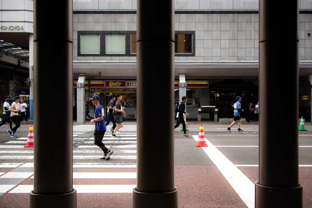 途中で市民マラソンに遭遇。